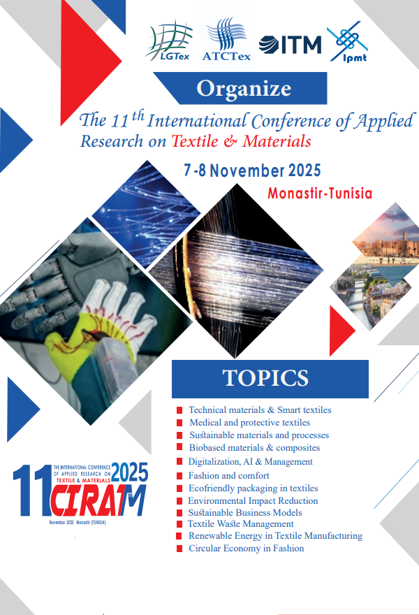 CIRATM-11 (11ème édition de la Conférence Internationale de la Recherche Appliquée dans le Textile et les Matériaux, un événement scientifique de haut niveau organisé tous les deux ans depuis 2004 par le Laboratoire de Génie Textile (LGTex, Tunisie), en co-organisation avec l’Association Tunisienne des Chercheurs en Textile (ATCTEX), à Monastir.