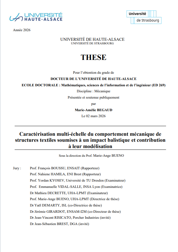 Son travail de thèse est intitulé : Caractérisation multi-échelle du comportement mécanique de structures textiles soumises à un impact balistique et contribution à leur modélisation